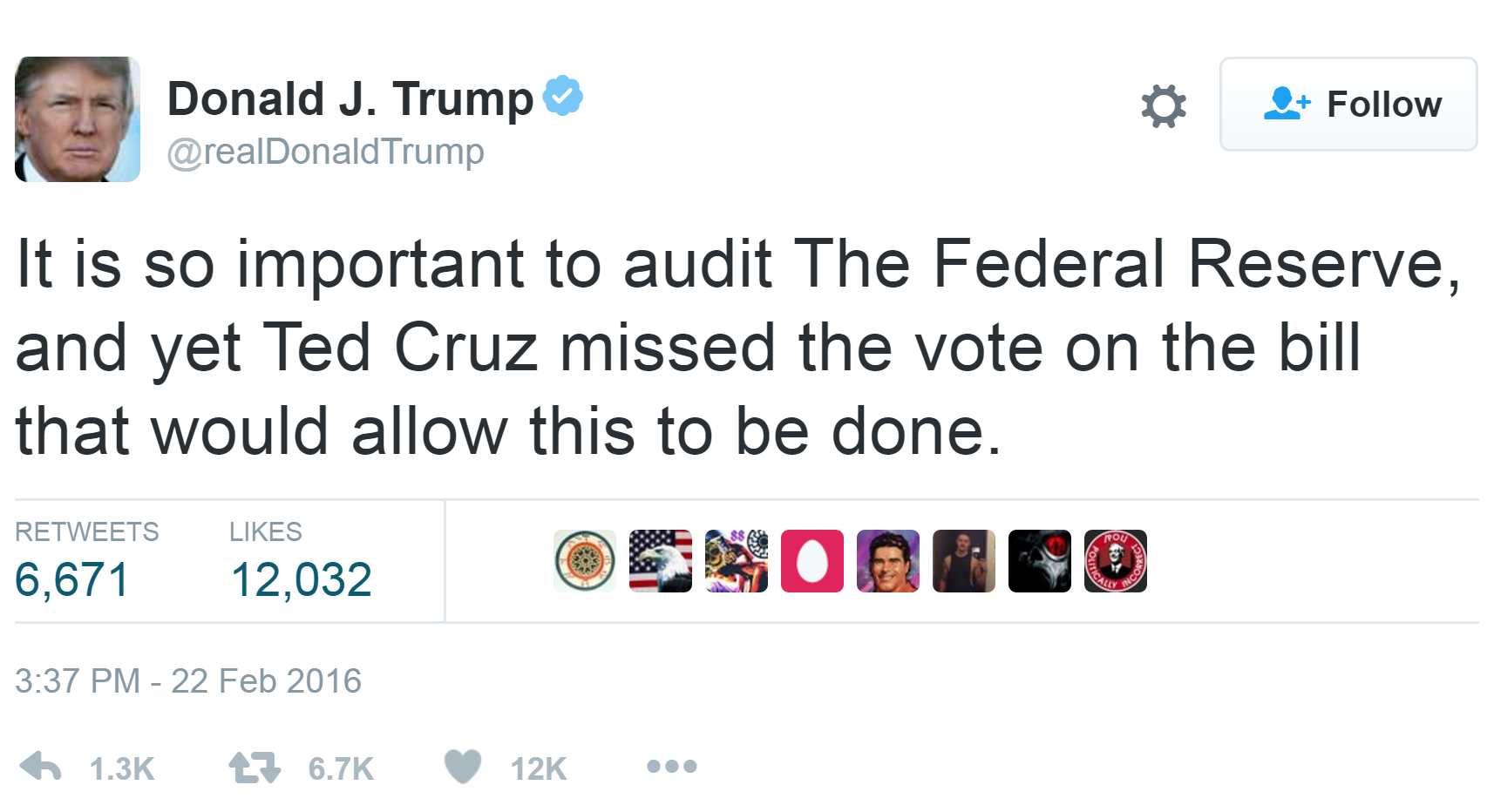 Trump swipes at Fed during 2016 campaign.