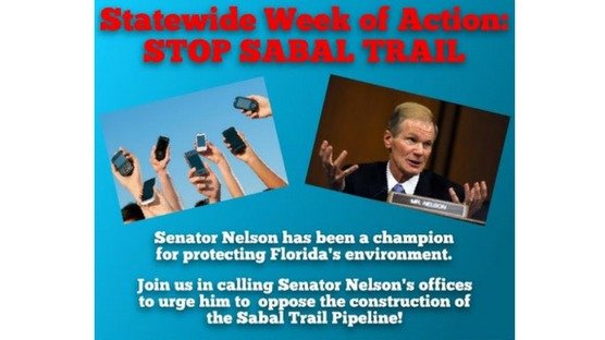 Apr 18, 2017 — This week we are joining organizations across the state, calling on Senator Nelson to take action to stop the Sabal Trail Pipeline. The Senator has long been a champion for protecting the environment in Florida, and we need him now more than ever.
