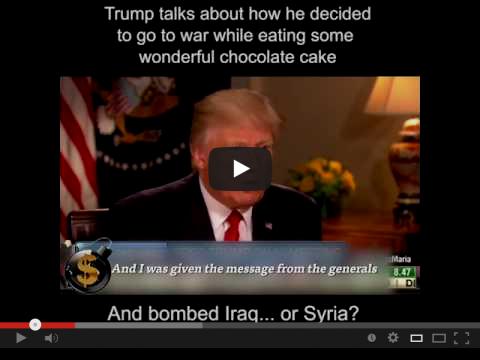 Given the fact he can’t even remember where he just bombed (see video below) maybe there is hope that one day, over some delicious chocolate cake, he’ll accidentally bomb the District of Criminals and get rid of most of the evil in the world.