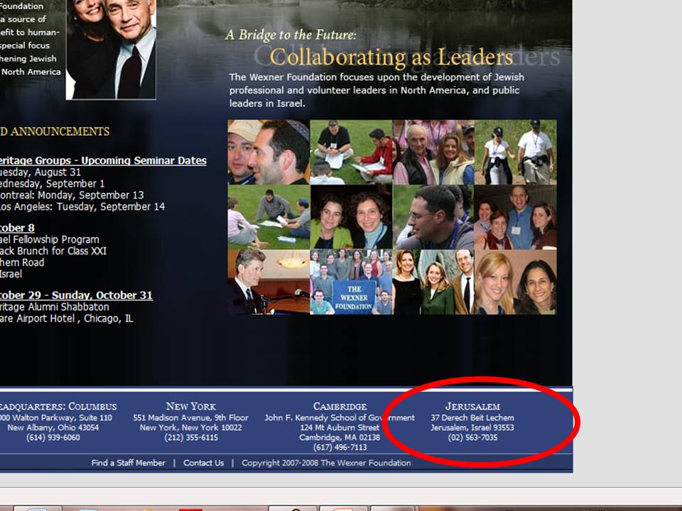 From: www.wexnerfoundation.org – Office in Occupied Jerusalem
