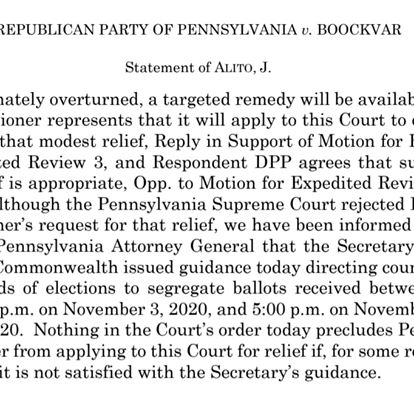And remember. SCOTUS left the decision open to review post-election day ballots. They are allegedly being kept separate in case they are excluded from the final count in a SCOTUS decision to implement the exact letter of the Constitution about elections.