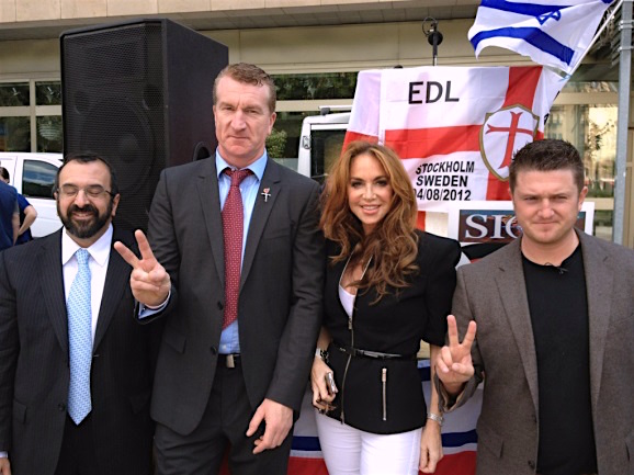 Tommy Robinson (Stephen Yaxley-Lennon) is connected to Frank Gaffney a number of different ways. The connection through Pamela Geller and Robert Spencer is illustrated in the image above. The most significant connection is through former COO of Gaffney’s Center for Security Policy Christine Brim, who is also a director of the Center for Vigilant Freedom alongside Alan Lake, EDL founder. The EDL was set up with the help of a 70,000 dollar grant from Gaffney’s Center for Security Policy, channelled through the Center for Vigilant Freedom. There is much more connenction that need to be explained in greater detail in the future.