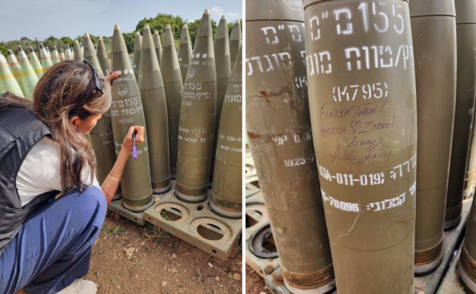 Nimarata Randhawa has been in Israel signing shells that are being used to genocide Palestinians in Gaza. She literally signed one of the shells with the phrase “finish them” as if she’s a character in a Mortal Kombat videogame.