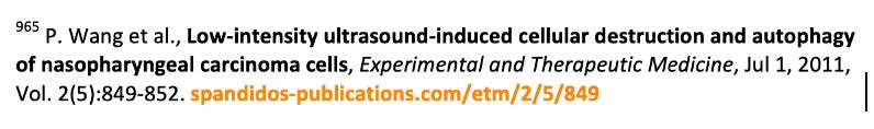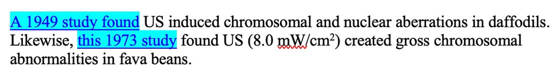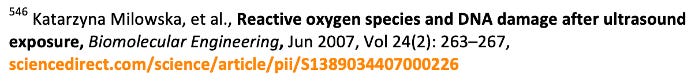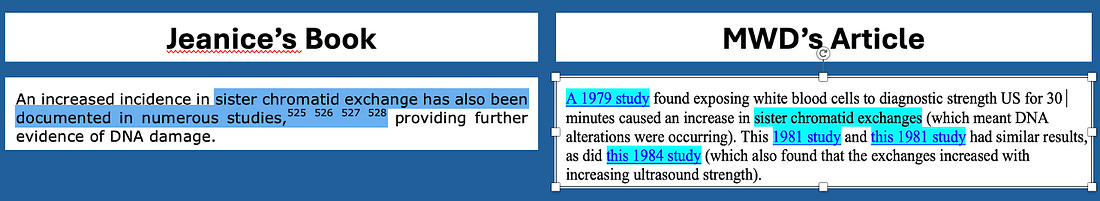 Note, where I reference this study in my book, I also reference several other studies (see below – citations #s 525-528) that address ultrasonically induced sister chromatid exchange. MWD simply clicked on these other citations, copied the links, and then placed them in her article in the same paragraph.