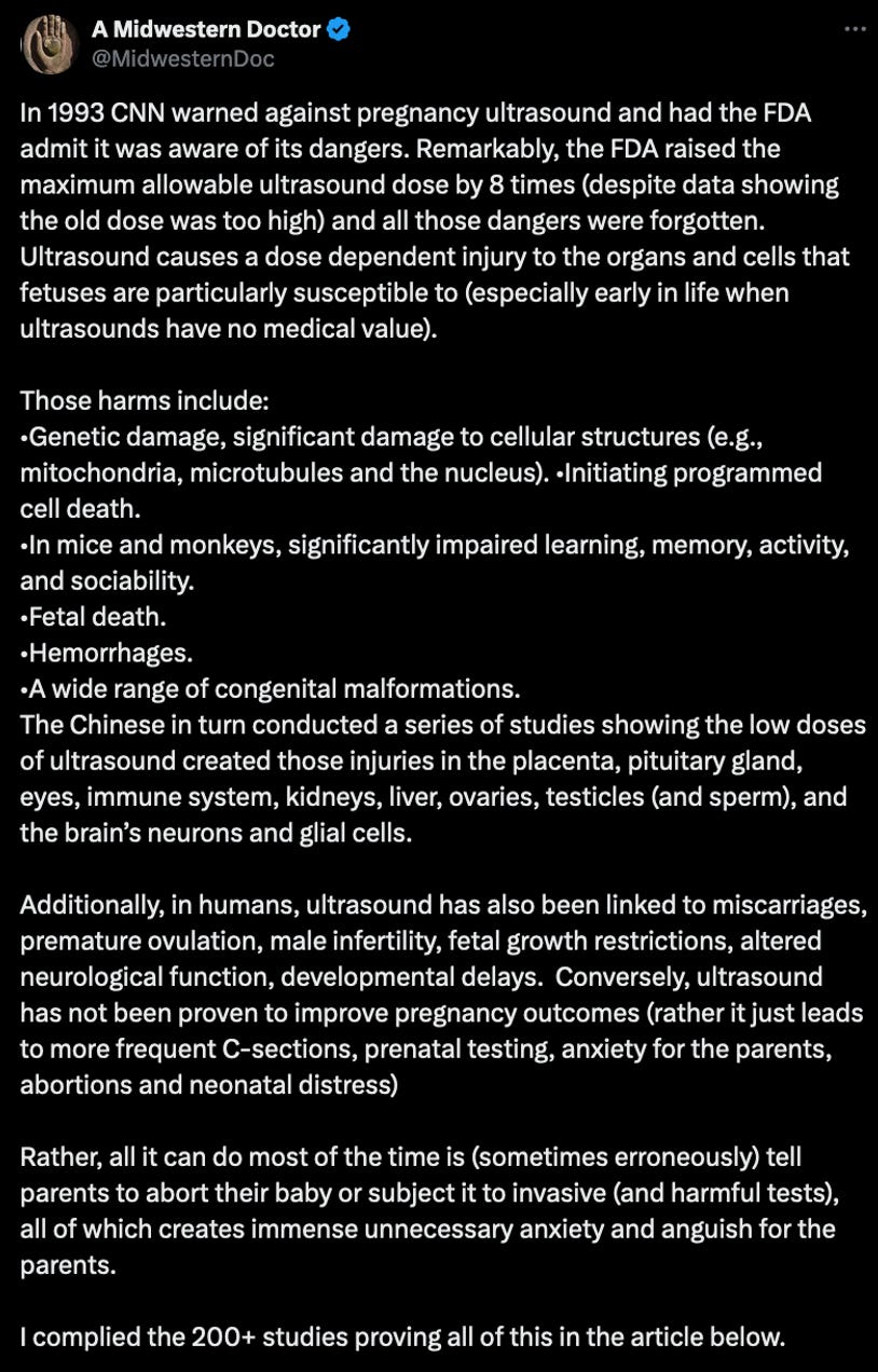 Or here: https://www.midwesterndoctor.com/p/the-forgotten-dangers-of-ultrasound