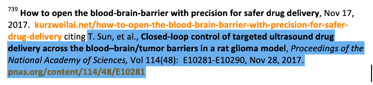The 2017 study T. Sun study regarding opening the blood brain barrier with ultrasound to deliver a payload of chemotherapy into the brain is listed as part of citation #739 in my book and referenced on page 121.