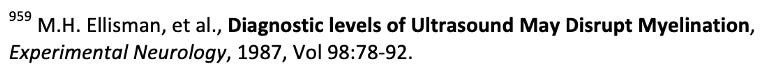 The 1987 study at the top of the list is the Ellisman study which involved the deliberate torture and paralysis of rats through exposure to ultrasonic irradiation. This study is citation #959 in my book and referenced on page 158.