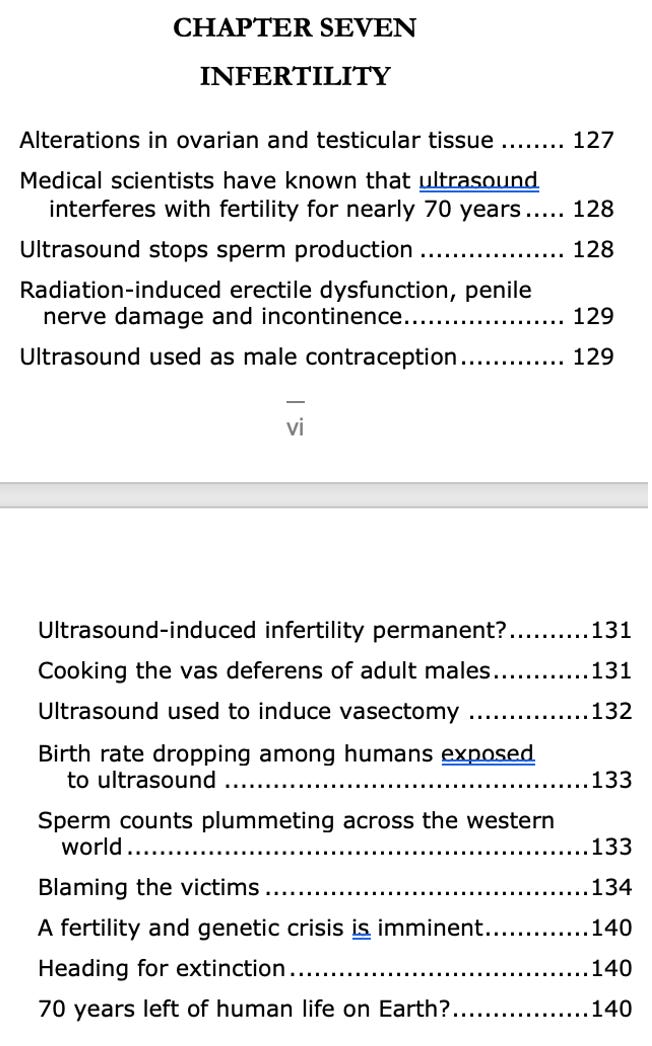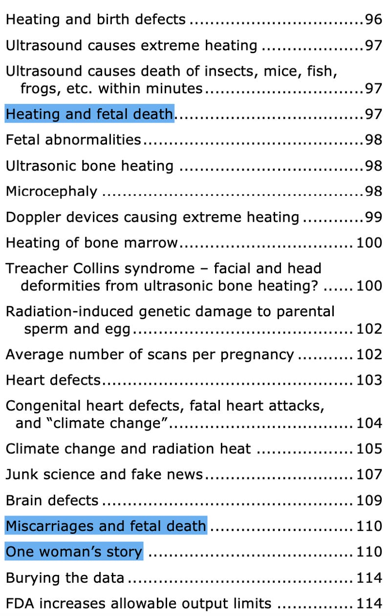 It is important to point out that my book contains an entire chapter regarding ultrasound’s effects on human (and animal) fertility. See the table of contents for this chapter below. MWD stole many links from this chapter of my book including the link just discussed plus several more which I will describe below.