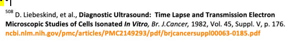 MWD then links to another 1979 Liebeskind study showing that ultrasonic irradiation is causing cells to become tumorous. This study is citation #509 referenced on page 84-85 of my book.