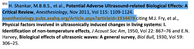 MWD’s comment about the “century of evidence” regarding ultrasound toxicity was taken directly from my book which actually contains the century of evidence in detailed form with citations to back up the info.