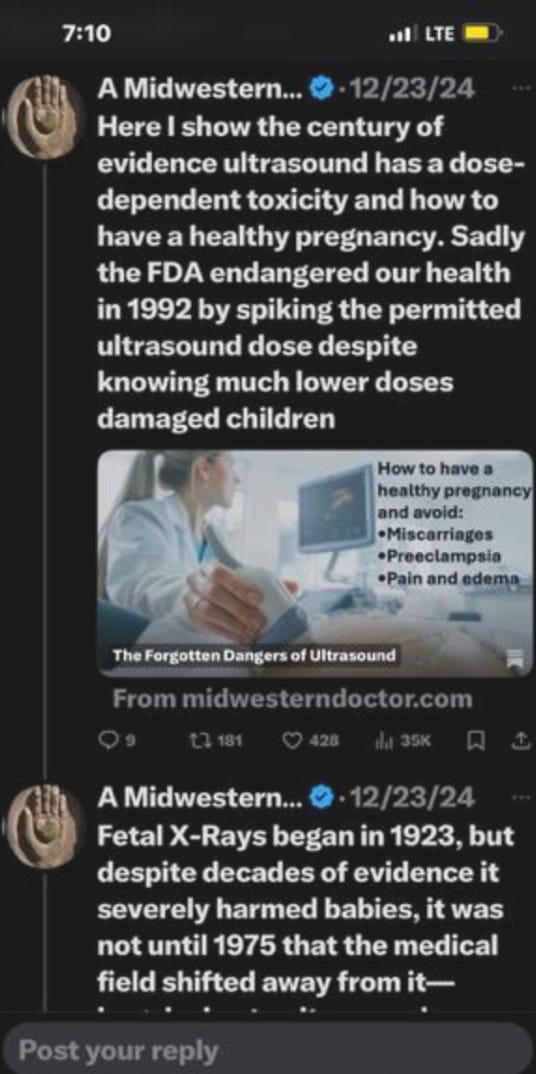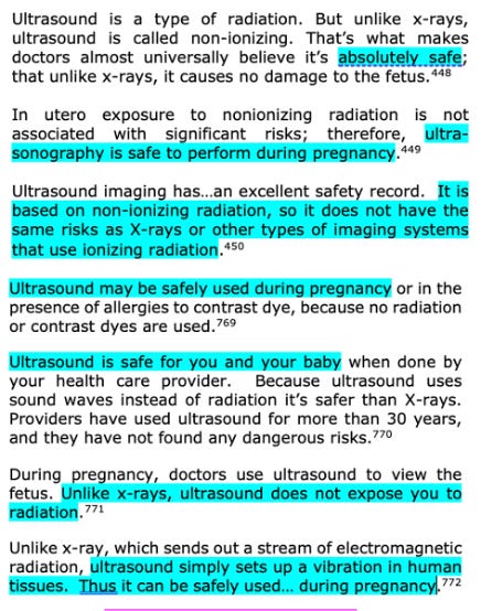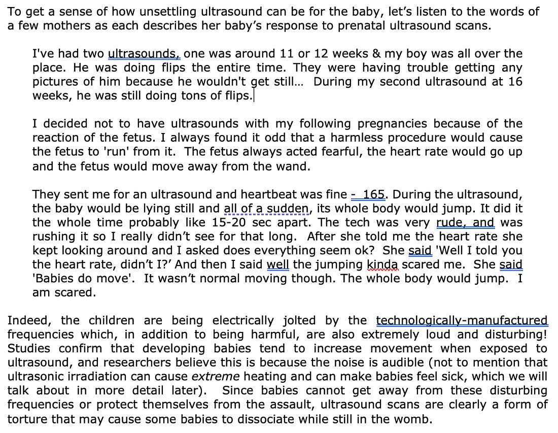 MWD is a major player in this satanic network and that is exactly why her substack has become high profile. Her job in this particular case involves (a) covering up the true, extensive and irreversible harm of prenatal ultrasound by lying and claiming there is a “safe” amount of exposure which there absolutely is not (more on this shortly); (b) revealing a very small amount of truth about the dangers of ultrasound and hospital birth for consumption by the gullible public while simultaneously parading lies that the medical establishment wishes to promote; and (c) attempting to bind my work by mimicking and replicating some of the information in my books and simultaneously distorting it for the benefit of the control system.