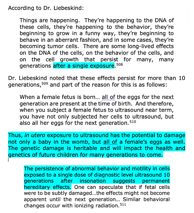 Next MWD links to a 1979 study by Dr. Doreen Liebeskind who exposed the heritable genetic harm being caused by a single exposure to ultrasound. This particular study is referenced numerous times in my book, but in the case of this theft, the information was stolen from citation #527 discussed on pages 86-87 of my book.