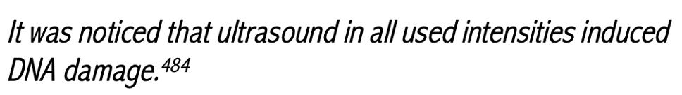 This lie is repeated ad nauseum throughout MWD’s article and I believe it is a big part of why MWD actually wrote the ultrasound article – i.e., to promote this industry lie while simultaneously attempting to counteract the documented facts I present in my book. What she is trying to do is get people to believe that so-called “low dose” radiation from noxious medical devices like ultrasound is perfectly safe as long and as we are not exposed to “too much”, all will be well. This is not true and I go into great detail in my book to debunk this lie. My research clearly indicates that even a single exposure to ultrasound – no matter whether it is “low level” or “high level”, can cause irreversible genetic damage that persists for 10 generations and beyond (see pages 79-85 of my book for more on this topic).