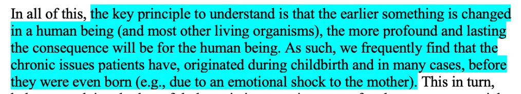 Although MWD links to the work of other people in this paragraph, her comment actually comes from the information I present in my birth trauma book. Within this book, I explicitly address the significance of traumatic prenatal and birth memories that millions of people are unconsciously holding in their bodies. These unresolved preverbal memories are called “imprints” and can negatively influence us throughout life, affecting our life experience including our health, thoughts, beliefs, attitudes, behavior and the way we create reality. I have been educating and writing about these unconscious early life memories (such as being in a womb where we are not wanted or being the result of a loveless union or being born by c-section) in an attempt to help people heal these damaging wounds. If we do not or cannot heal the unresolved memories, the trauma can repeat itself when we become pregnant and/or give birth to our children (this is called traumatic repetition). The trauma then gets passed on to our children and grandchildren – a process is known as intergenerational trauma. For more information about this, please read my birth trauma book.