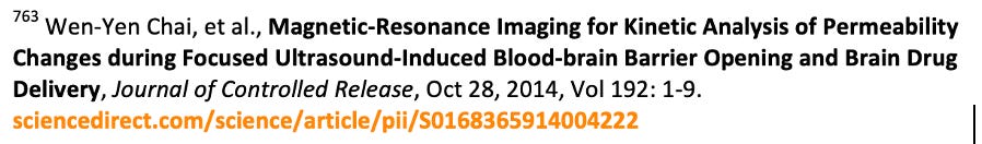 The 2014 study MWD links to next is the Wen-Yen study that I quote and reference several times in my book, including on page 124, citation #763. Despite its title, this study is not really about opening the blood brain barrier with ultrasound but rather deliberately using ultrasound to destroy structures of the brain and central nervous system of animals. Rather than read the entire article, MWD must have simply noticed the title of the study and decided to include in the blood brain barrier discussion, but this is not what the study is really about. Of course, MWD does not know this since she never laid hands on the study but simply grabbed the link from my book.