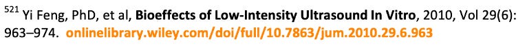 The 2010 study MWD links to next is the Feng study showing again ultrasonically induced mitochondrial dysfunction as well as disturbances with calcium signaling in the cells. This study is quoted on page 86 as citation #521.