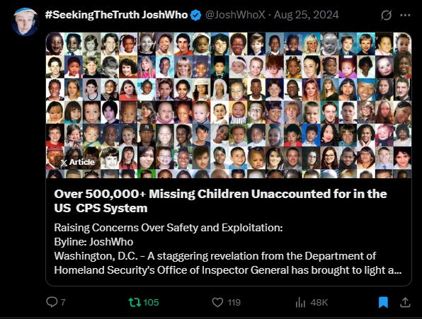 He claimed that through phony humanitarian organizations, diplomatic pouches, and black-site airports, the American aristocracy were bringing in children by the plane and shipload.