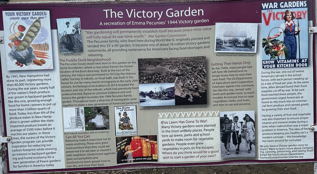 I was wandering around Strawberry Banke yesterday in Portsmouth and came upon this edifying poster, which you might need to blow up to read. There were 18 million registered victory gardens furing WW2, and the government helped teach people how to grow food. I doubt they will be teaching us much during the next food crisis. “By the end of the war, nearly half the country’s fresh produce was grown in victory gardens like this”
