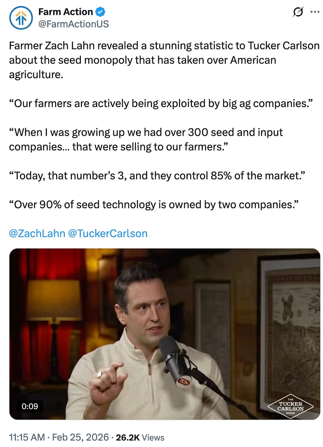 You know that one of the two companies who has monopolized seeds is Bayer/Monsanto: